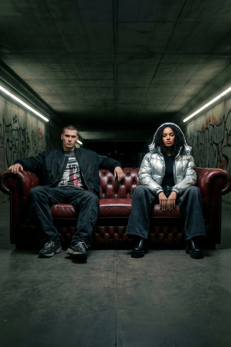Halo optional. Horns included. Cotton-poly build padded thick with a silhouette that turns cold streets...