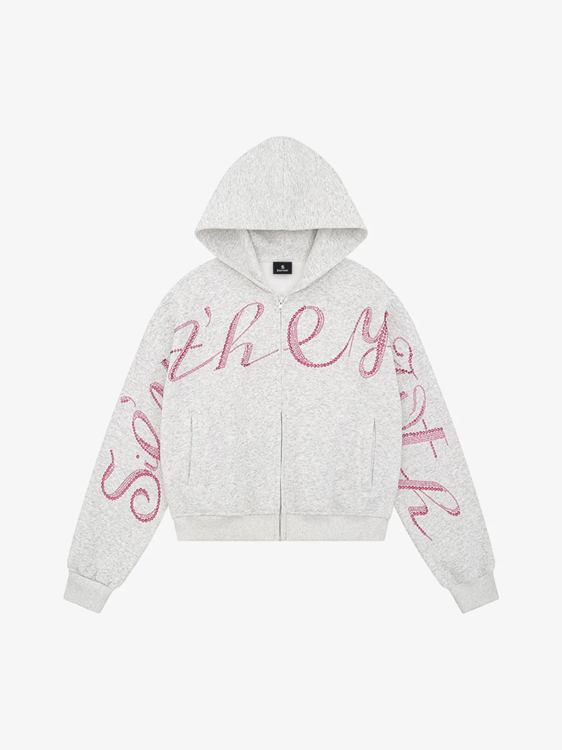 Flash subtle. Hit hard. Cropped silhouette cuts clean while rhinestone lettering catches light like controlled...