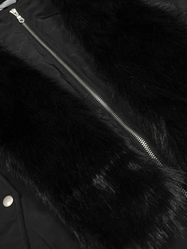 Conflict in texture. Retro quilted armor cut with plush faux-fur panels at the collar and cuffs, striking a cold, calculated contrast. Zip sleeve pocket sharpens the utility—insulated, aggressive, built to own winter streets.